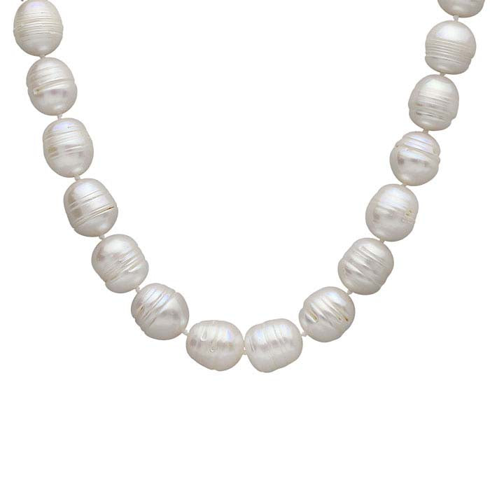 Cultured 10–13mm Ringed Barrel White Pearl Necklace