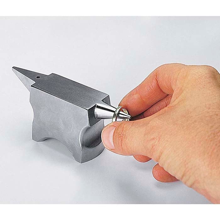Work smaller pieces or components on this miniature anvil with one flat surface, one half-round surface, one round horn and one flat horn. There is a hole on top for riveting. High quality, all-steel construction.