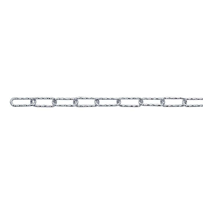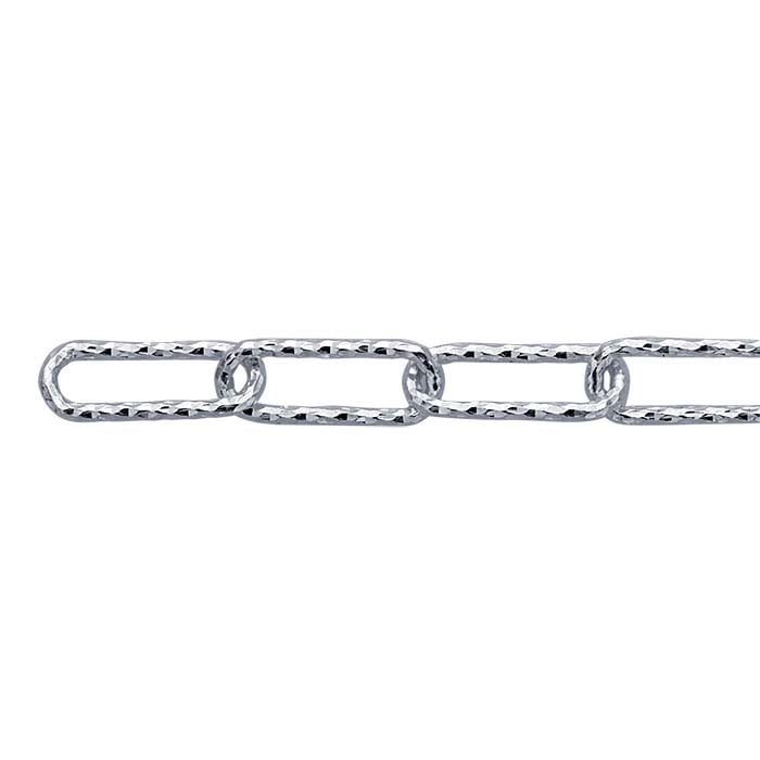 This sterling silver cable chain offers long, diamond-cut links that provide a light-catching streamlined look. Offer this chain as is, or use it as a foundation for your custom designs.The most common chain style, cable chains are formed by simply connecting single links perpendicularly end to end. Links may be round, oval or other shapes. Diamond-cut versions have facets precision-cut into the links with diamond-tipped tools. The facets are then polished to enhance the light-reflecting properties of the link surfaces.This chain is sold by the foot, so it's easy to be sure you have as much chain as you need.