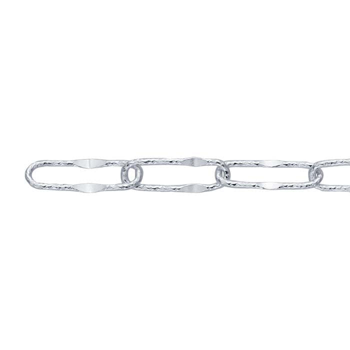 The long links of this sterling silver cable chain feature precise diamond cuts that create a light-catching appearance. Offer this chain as is, or use it as a foundation for your custom designs.The most common chain style, cable chains are formed by simply connecting single links perpendicularly end to end. Links may be round, oval or other shapes. Diamond-cut versions have facets precision-cut into the links with diamond-tipped tools. The facets are then polished to enhance the light-reflecting properties of the link surfaces.This chain is sold by the foot, so it's easy to buy as much or as little length as you need.