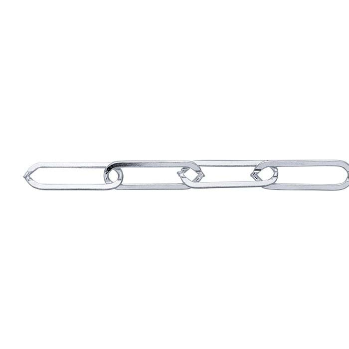The long, flat links of this sterling silver cable chain give it a streamlined profile that is ideal for bold deigns. Offer it as-is, apply a patina to enhance the texture, or add charms, drops or dangles for a more complex design. The most common chain style, cable chains are formed by simply connecting single links perpendicularly end to end. Links may be round, oval or other shapes.This chain is sold by the foot, allowing you to have exactly the length you need when you need it.