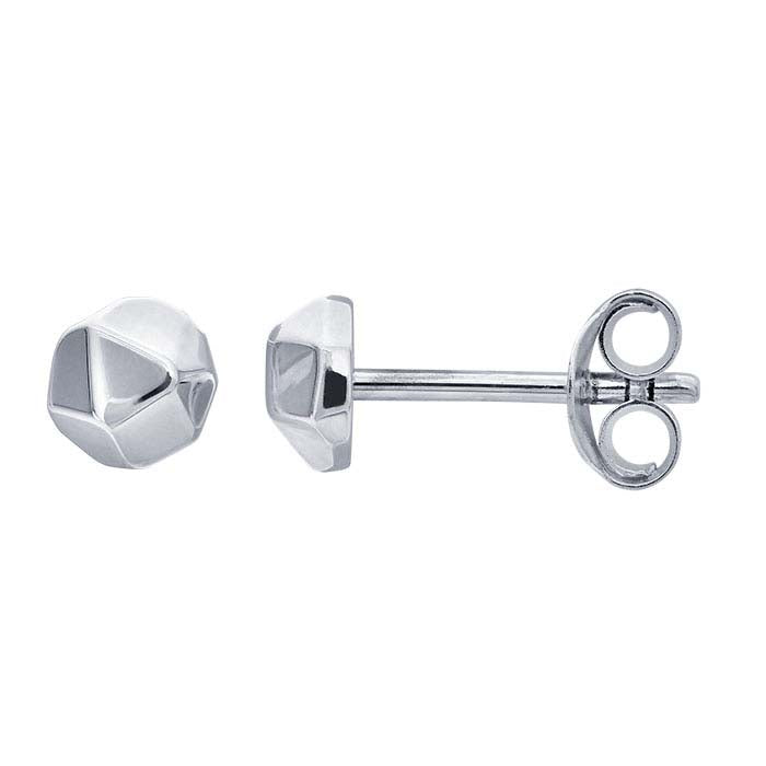 This pair of sterling silver post earrings feature a nugget shape and have a bright finish. The post features two grooves, allowing customers to customize the fit of their earring; ear nuts are included.