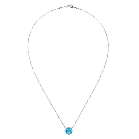 10K White Gold Swiss Blue Topaz- & Diamond-Set Necklace