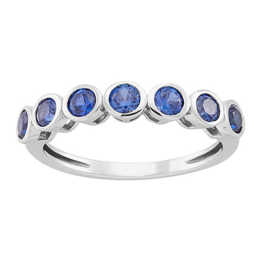 10K White Gold Lab-Grown Sapphire-Set Seven Stone Ring