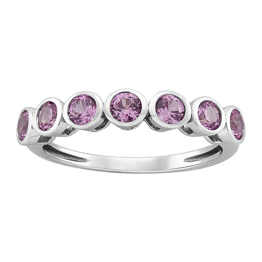 10K White Gold Lab-Grown Pink Sapphire-Set Seven Stone Ring