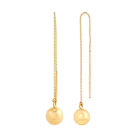 14K Yellow Gold Threader Earrings with Ball Drop