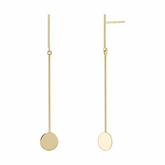 14K Yellow Gold Long Bar Drop Post Earrings