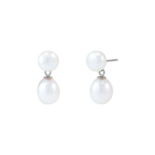 14K White Gold Double Freshwater Pear-Set Post Earrings