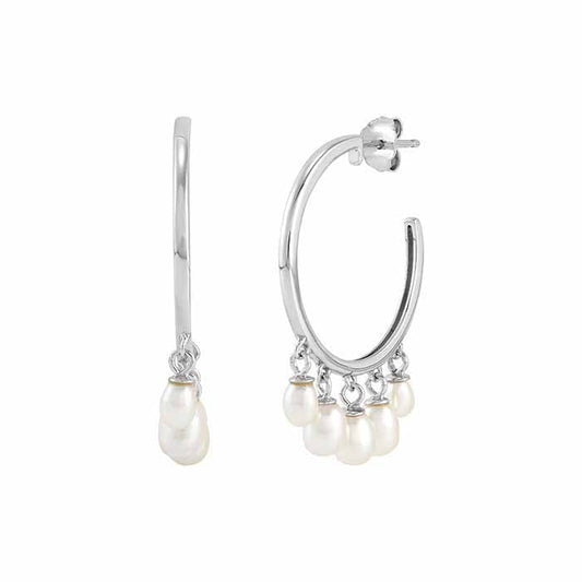 Sterling Silver Hoop Earrings with Freshwater Pearls