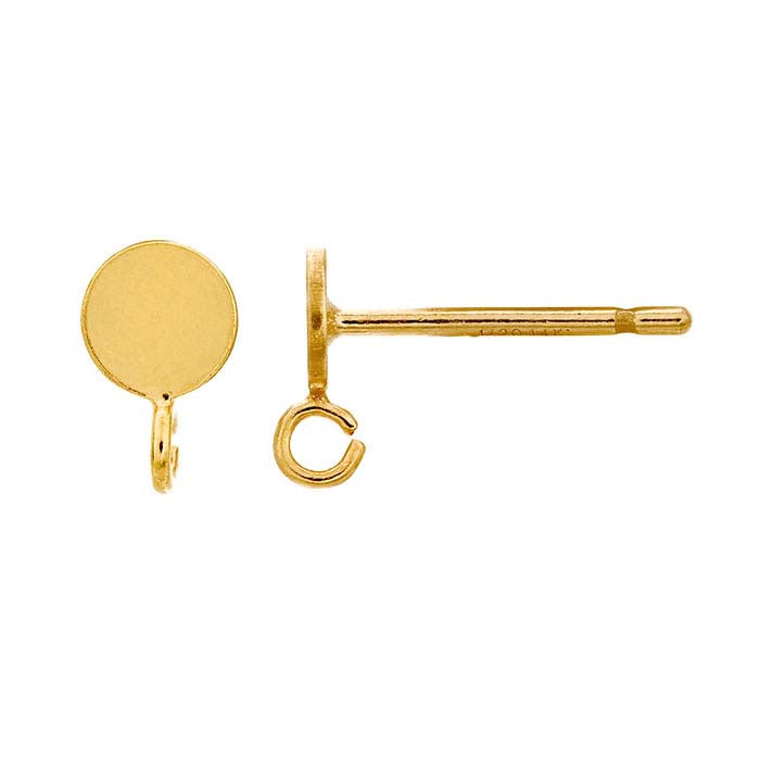 This 14/20 yellow gold-filled post earring features a round flat disc design with a bright finish. The open ring allows you to add drops or dangles to complete the design. The friction post features a groove that helps provide the most secure and comfortable fit. This earring is plated with 14-karat yellow gold to ensure a uniform color.