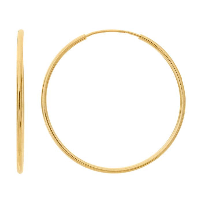 14K Yellow Gold 1 x 25mm Endless Hoop Earrings