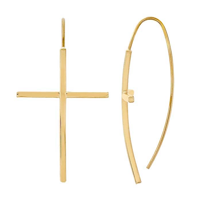 These finished 14-karat yellow gold ear wire earrings feature a curved cross design and a smooth, bright finish.