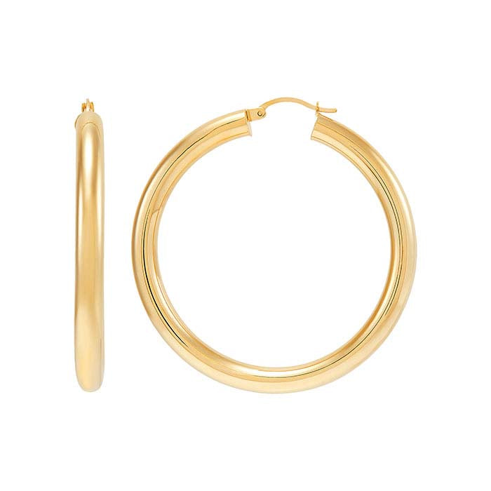 Made from 4.5mm round tube, these finished 14-karat yellow gold hoop earrings offer a classic look and have a polished finish.