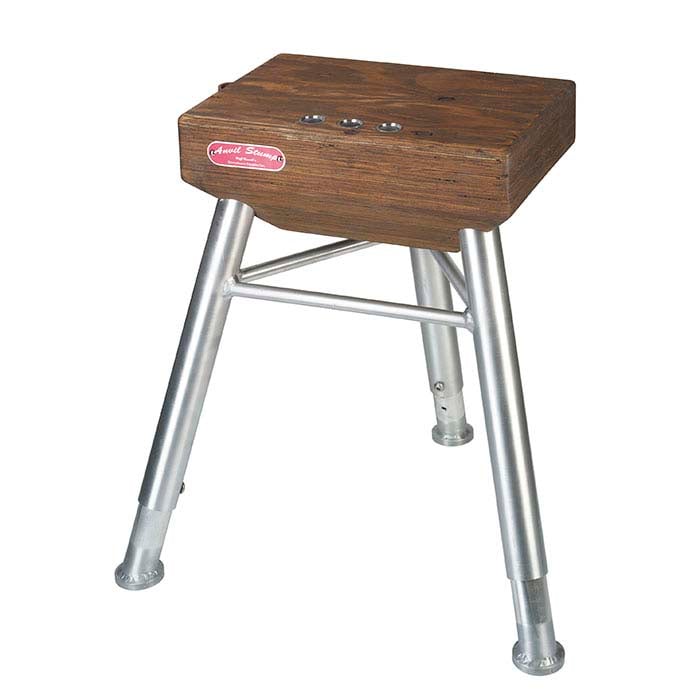 This wood anvil stump sits between light, adjustable aluminum legs. Use with the 35-lb. anvil.