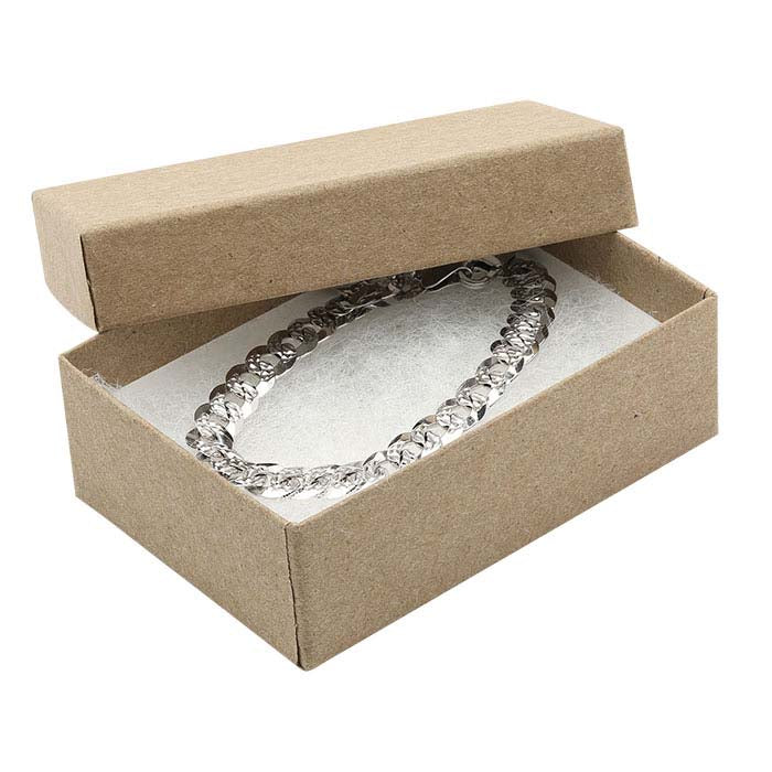 Offer your customers eco-friendly, on-trend packaging they’ll feel good about. This universal box with lid is made from 90% post-consumer fiber, covered with paper made from 100% post-consumer fiber.Customize it with hot stamping to keep your brand top of mind. Combine this versatile, seasonless neutral with other solid-color boxes, or with colorful paper and ribbon.The box includes ½”-thick white poly-fill wadding that will not cause tarnish.