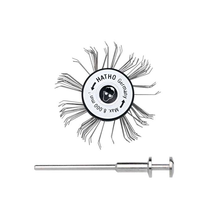 Run MiniMat texturing wheels in a flex shaft, mini-lathe or micro-motor—any equipment that typically accommodates 3/32"-shank tools. Replace bristles as needed to keep the wheel performing effectively.