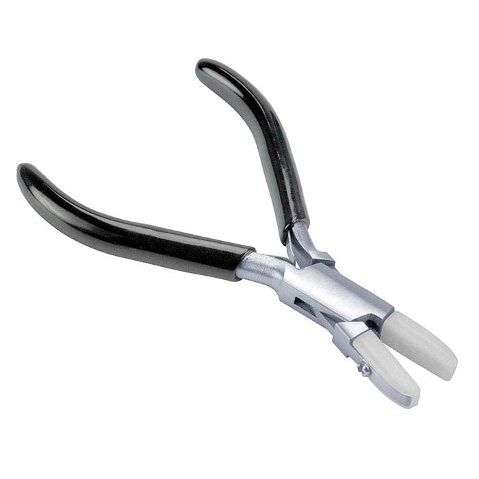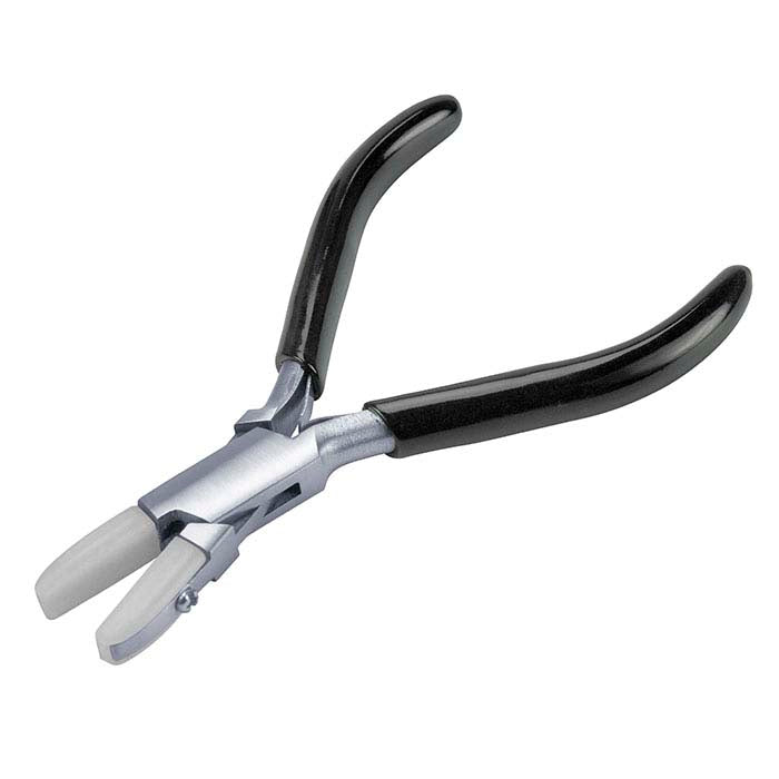 These flat-nose pliers feature nylon-lined jaws that shape metal and wire without marring and can be filed or shaped to suit specific applications. The slim shape and smaller size makes this tool ideal for delicate tasks. On flat-nose pliers, both jaws are flat; the nylon lining is ideal for shaping and flattening even soft metal sheet, wire and components.
