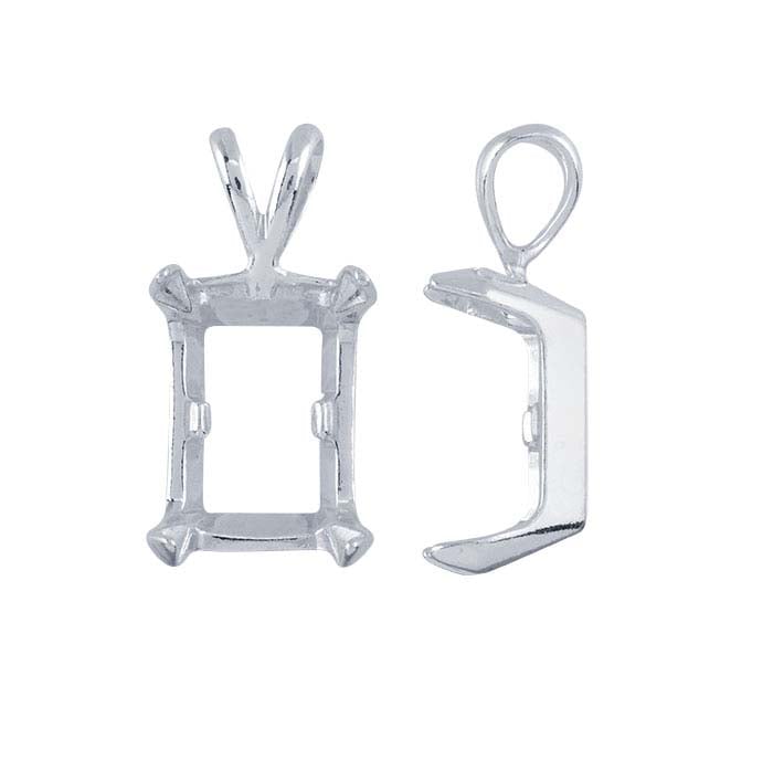 Sterling Silver 16 x 12mm Emerald-Cut ReadySet™ Pendant Mounting
