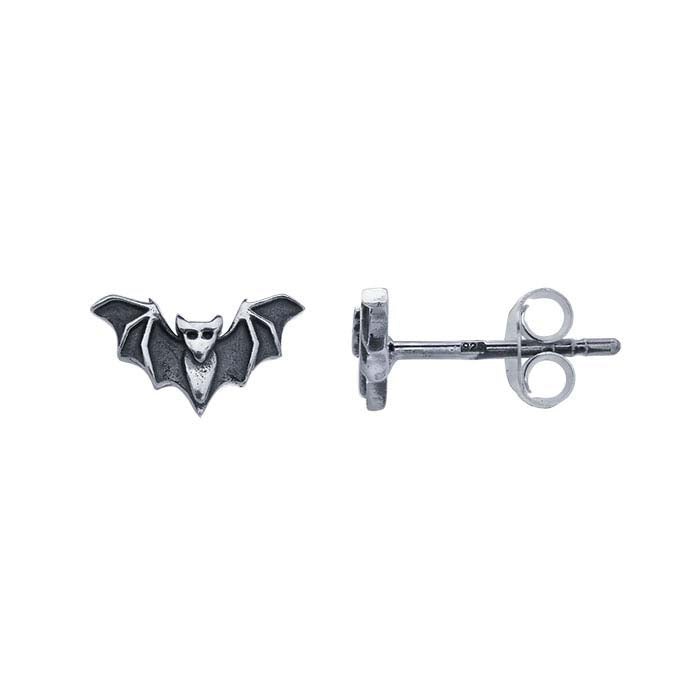 These finished sterling silver post earrings feature an oxidized, detailed bat design. The friction post features a groove that helps provide the most secure and comfortable fit; ear nuts are included.