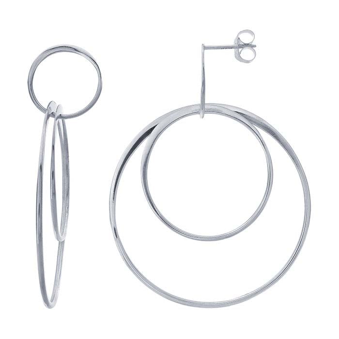 These finished sterling silver post earrings feature an open circle with two perpendicular hoop dangles. The friction post features a groove that helps provide the most secure and comfortable fit; ear nuts are included.
