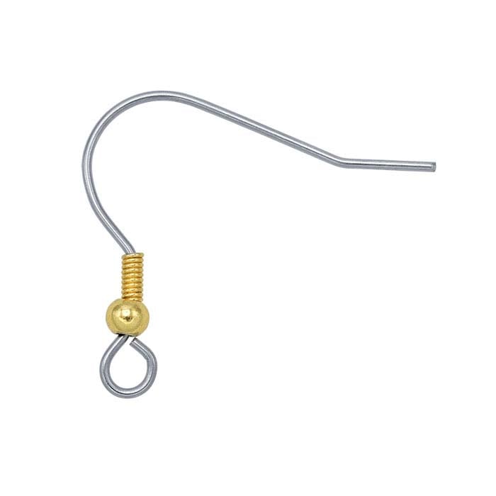 Surgical Steel Ear Wire with Loop, Gold-Plated 3mm Bead and Coil