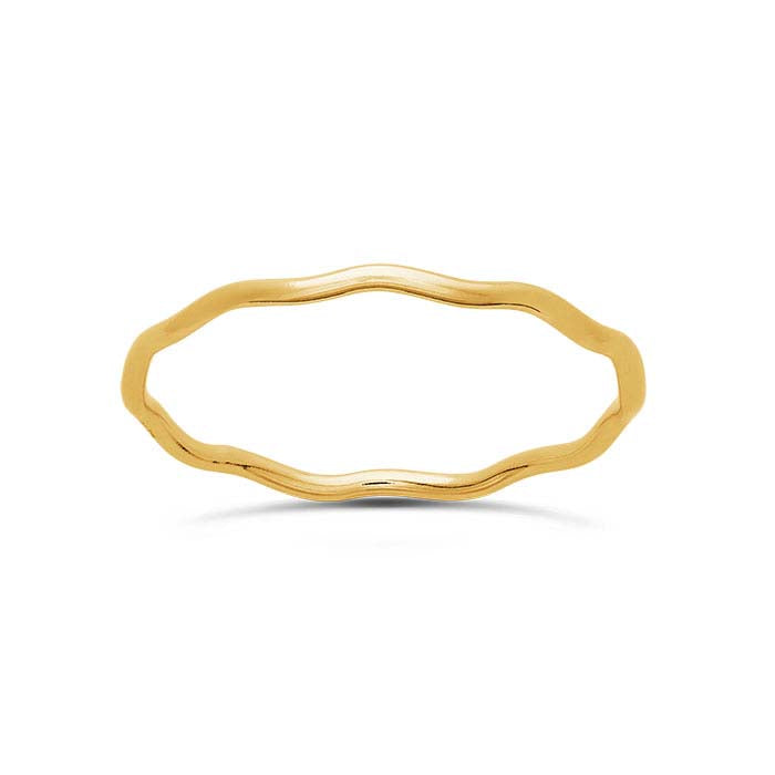 This 14/20 yellow gold-filled ring offers a wavy design with a bright finish. It looks great as a single accent or with other stackable rings. Offer stackable rings in different metals and textures and encourage your customers to mix it up!