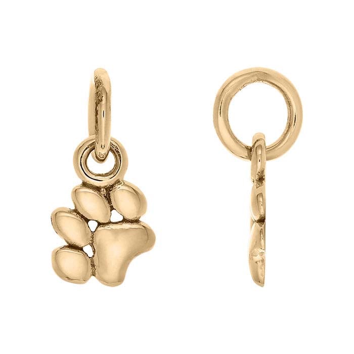Create special pieces for pet-lovers with this sterling silver paw-print charm. Positioned at an angle, it makes a great addition to a bracelet or necklace. This charm includes a closed ring.