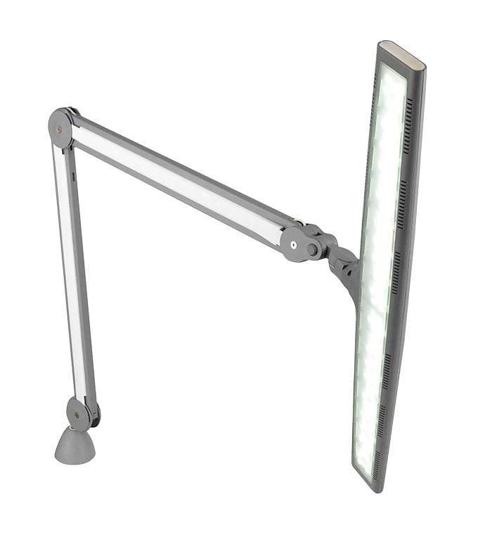 This Daylight™ Luminos lamp features a 25-1/2"-wide, high-power LED illumination that provides superior light output levels across your entire bench or workspace, helping to reduce eye fatigue. The internal spring arm, with reinforced joints, provides accurate positioning and a maximum reach of more than 3-1/2 feet. The free-motion head joint is easily moved with one hand and automatically holds any position you set it in.