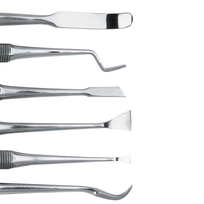 Six uniquely designed, single-ended wax-carving tools offer precision sharpened hardened steel ends for maximum wax-carving capabilities. Knurled handles provide a sure grip.