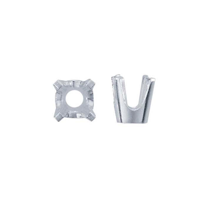 This sterling silver setting holds one 2mm round faceted gemstone. A low-base setting holds the gemstone close to the surface of the design, presenting a unified look for the overall design. A classic choice, the 4-prong setting supports the gemstone on four sides.