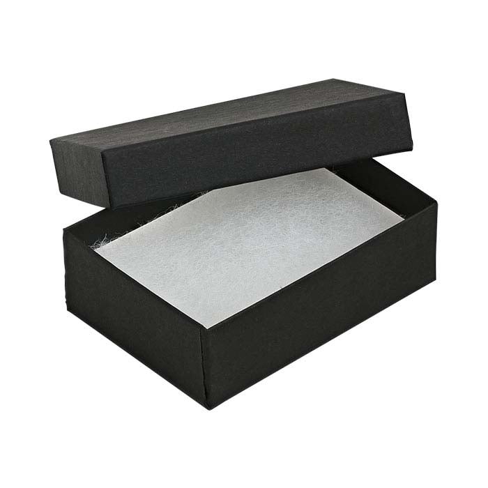 Offer your customers eco-friendly packaging they’ll feel good about. This universal box with lid is made from 90% post-consumer fiber, covered with paper made from 100% post-consumer fiber.Customize it with hot stamping to keep your brand top of mind. Combine versatile, seasonless black with other solid-color boxes, or with colorful paper and ribbon.The box includes ½”-thick white poly-fill wadding that will not cause tarnish.