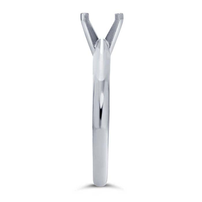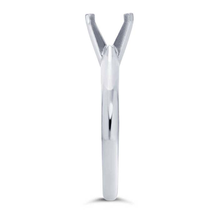 This classically styled platinum engagement ring features a 4-prong mounting that holds one 1/2-ct. (5mm, approx.) round faceted gemstone and a half-round profile. Cut a seat in the mounting to accommodate your stone, then burnish the prongs over the stone to secure it in place.