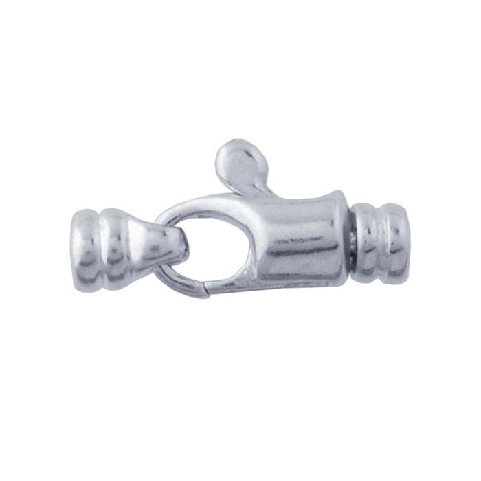 This sterling silver lobster clasp features end caps and a swivel mechanism to help keep strands from knotting and tangling. Ideal for bracelets and necklaces, this clasp is a great choice for designs that need to lie on the body without twisting. Use jeweler’s epoxy to secure cord into the end caps or solder chain directly into the ends.