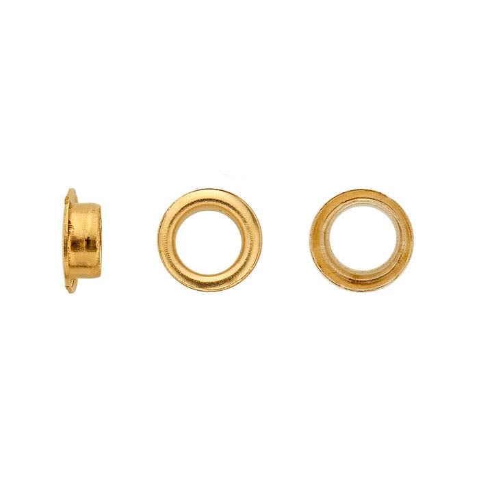 This 14/20 yellow gold-filled bead grommet gives your bead a clean, finished look. Match the inside diameter of the grommet to the hole size of your glass or stone bead. Insert a grommet in each bead hole, secure it in place with jeweler's epoxy and string as usual. If you're making your own glass beads, match your bead mandrel size to the inside diameter of the grommet—the grommet will fit perfectly into your finished bead.