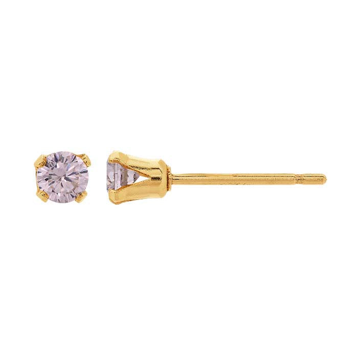 This 14/20 yellow gold-filled post earring features a Snap-Set™ mounting set with one 3mm round pink CZ, offering an economical alternative to tourmaline, the birthstone for October. The friction post features a groove that helps provide the most secure and comfortable fit; post earrings require an ear nut to keep the post in place.
