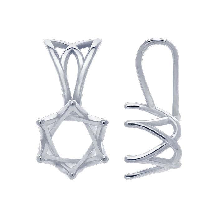 This 14-karat white gold pendant mounting features a swirl heart design at the base and holds one 5mm (1/2-ct., approx.) faceted gemstone in a 6-prong setting. It features a rabbit-ear bail—a tapered bail that’s split in half vertically, giving it the appearance of a pair of long, curving rabbit ears. The 6-prong setting offers extra security for large or high-value gemstones. Cut a seat in the prongs to accommodate your stone, then burnish the prongs over the stone to secure it in place. This pendant mounting is manufactured to exacting quality standards in our solar-powered facility.