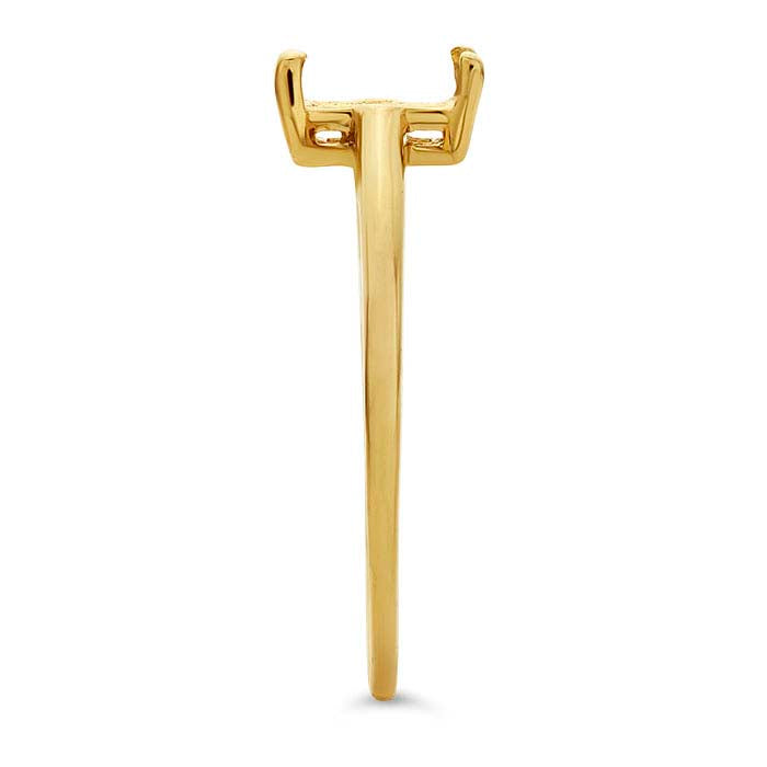 This 14-karat yellow gold ring features a pre-notched 4-prong emerald-cut basket mounting and a smooth, bright-finished shank; the shank has a rounded outer surface and a flat inside surface. A classic choice, the 4-prong mounting holds one 6 x 4mm emerald-cut-shaped stone, supporting the gemstone on four sides. Basket settings feature open sides designed to allow more light to reach and move through the stone, enhancing its brightness and brilliance. Pre-notched prongs provide a professional start to stone-setting with perfectly level stone seats already cut into each prong.