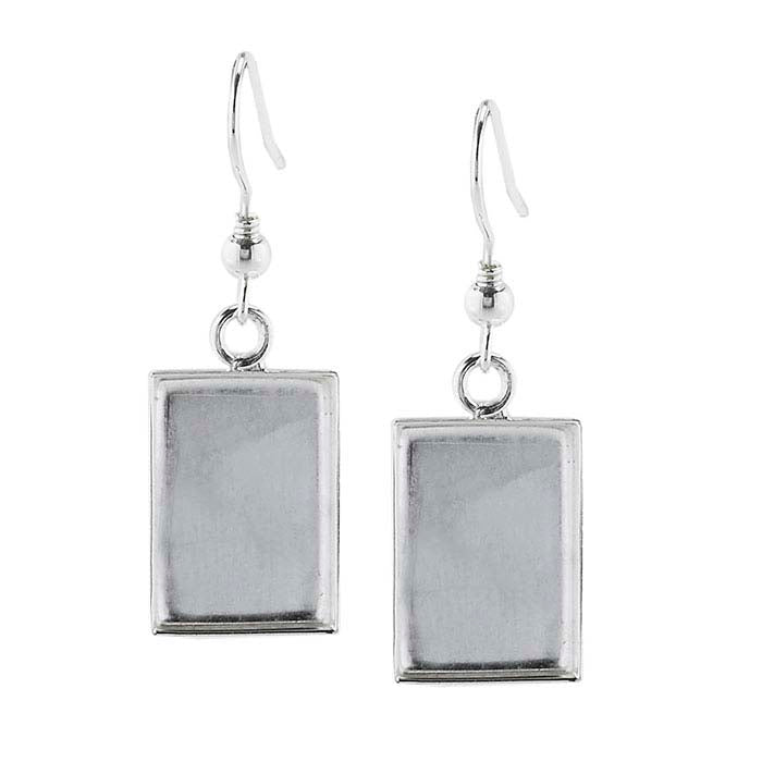 Brass Silver-Plated 17 x 11mm Rectangle Resin Ear Wire Mounting