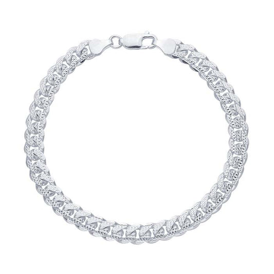 Sterling Silver 7mm Diamond-Cut Pavé-Look Curb Chain Bracelet