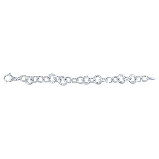 Sterling Silver 5.7mm Diamond-Cut Pavé-Look Curb Chain Bracelet