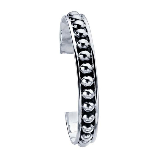 Sterling Silver Oxidized Three-Row Beaded Cuff Bracelet