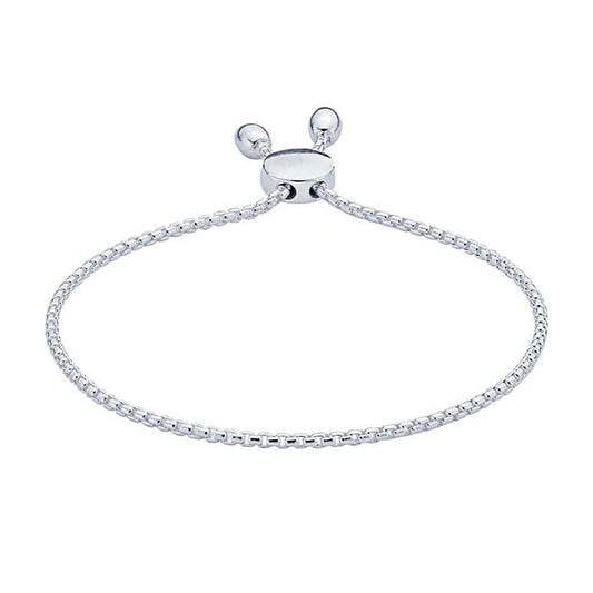 Sterling Silver Rhodium-Plated Bead Bracelet, Adjustable