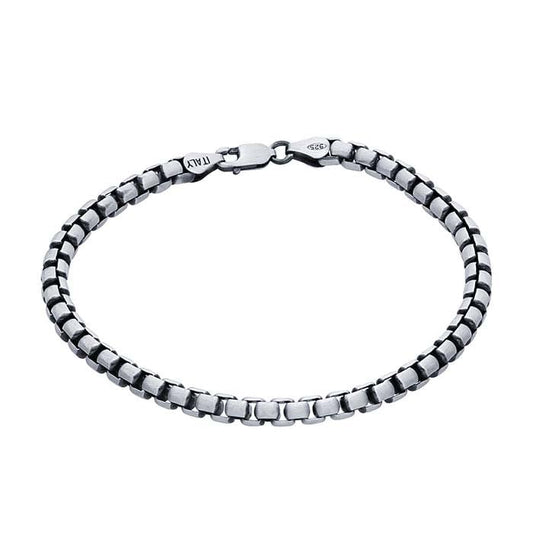 Sterling Silver Gunmetal 4.4mm Rounded Box Chain Bracelet