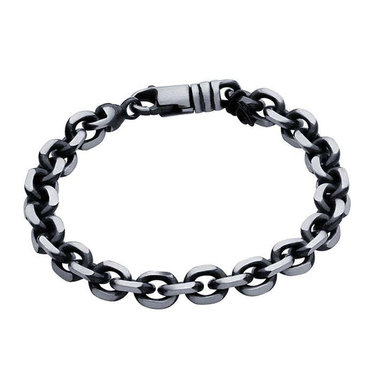 Sterling Silver Gunmetal 9mm Diamond-Cut Cable Chain Bracelet
