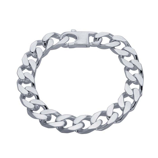 Sterling Silver 11mm Beveled Curb Chain Bracelet