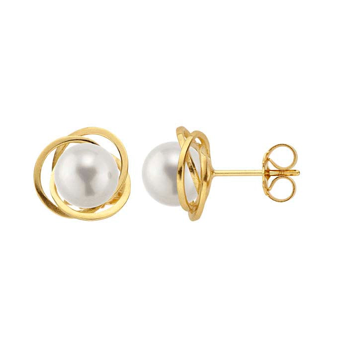Montura de arete con pasador de perla Love-Knot en oro amarillo de 14 quilates