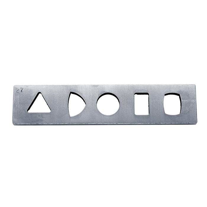 Forme una variedad de formas de componentes para sus diseños, de manera uniforme y precisa, con las placas de troquelado de silueta de acero. Esta placa presenta formas graduadas, ideales para crear cuentas graduadas o formas de collares y pulseras. Úsela con un recipiente de uretano para concentrar toda la fuerza en la placa de troquelado para obtener formas de volumen precisas. Use un uretano de 60d para obtener una forma con más volumen y menos detalle; use un uretano de 95d para obtener más detalle y menos volumen. También está disponible un kit que incluye un recipiente de uretano con un tornillo de mariposa de acero inoxidable, un empujador de acero, placas de troquelado de patrón combinado n.° 1 y n.° 3 y tres uretanos (60, 80, 95d).