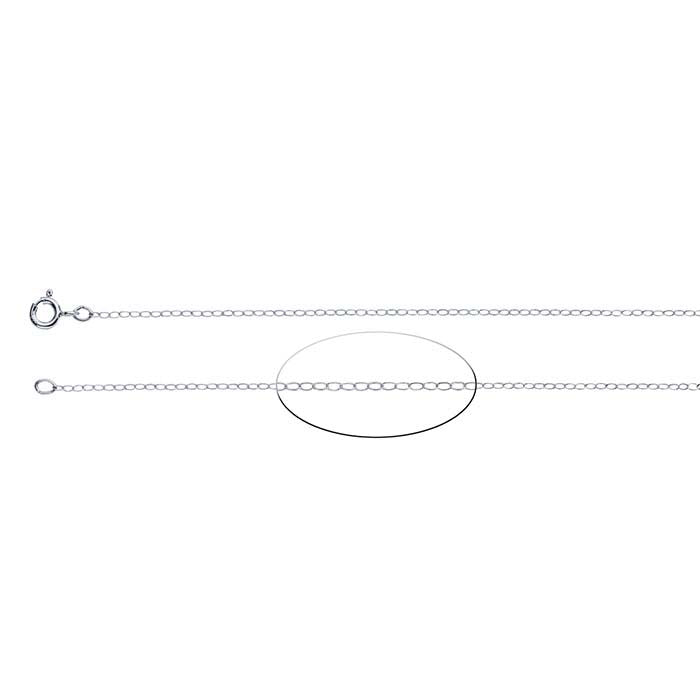 Las superficies planas captan la luz en esta clásica cadena oval de cable de plata esterlina, haciendo que el metal blanco sea aún más brillante. Esta es una excelente cadena para combinar con pequeños colgantes, dijes y pendientes. Disponible en longitudes terminadas, por pie y en carretes de 10 pies y 50 pies, para que pueda obtener exactamente lo que necesita. Las longitudes terminadas vienen con cierres y anillas finales como se muestra.
