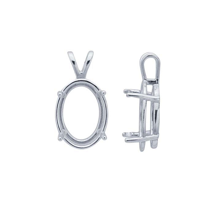 This sterling silver ReadySet™ pendant features a rabbit-ear bail and a 4-prong basket mounting that holds one 16 x 12mm oval faceted gemstone. Easy to set with professional-looking results, ReadySet™ settings have pre-notched prongs that help ensure beautiful, time-saving stone-setting. Basket settings feature open sides designed to allow more light to reach and move through the stone, enhancing its brightness and brilliance. A rabbit-ear bail is a tapered style that is split in half vertically, giving it the appearance of a pair of long, curving rabbit ears. Set your stone into the prongs to check the fit. If necessary, adjust the seat to best accommodate your stone. To secure the stone in place, burnish the prongs over the stone.