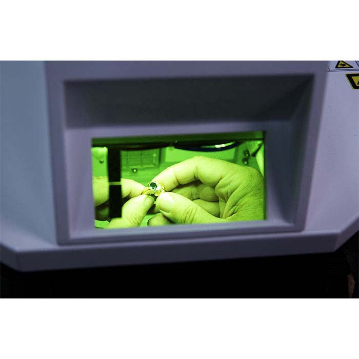 • Un diámetro de punto de 0.1–2.0 mm permite trabajos de detalle extra fino, como en o cerca de filigranas y alrededor de piedras engastadas.